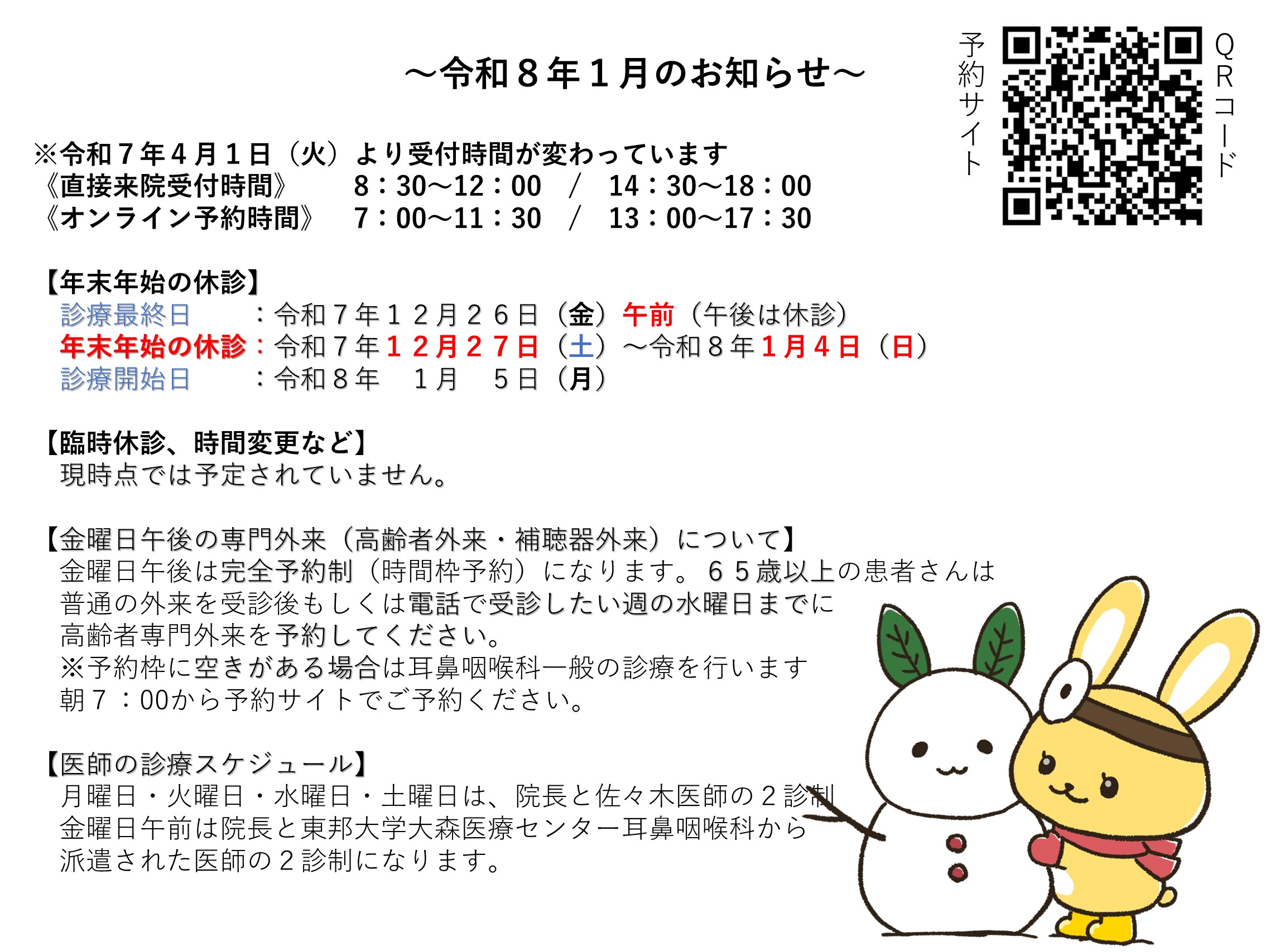 令和7年12月9日(火)午後の診療から通常診療に戻ります。ご迷惑をおかけしました。