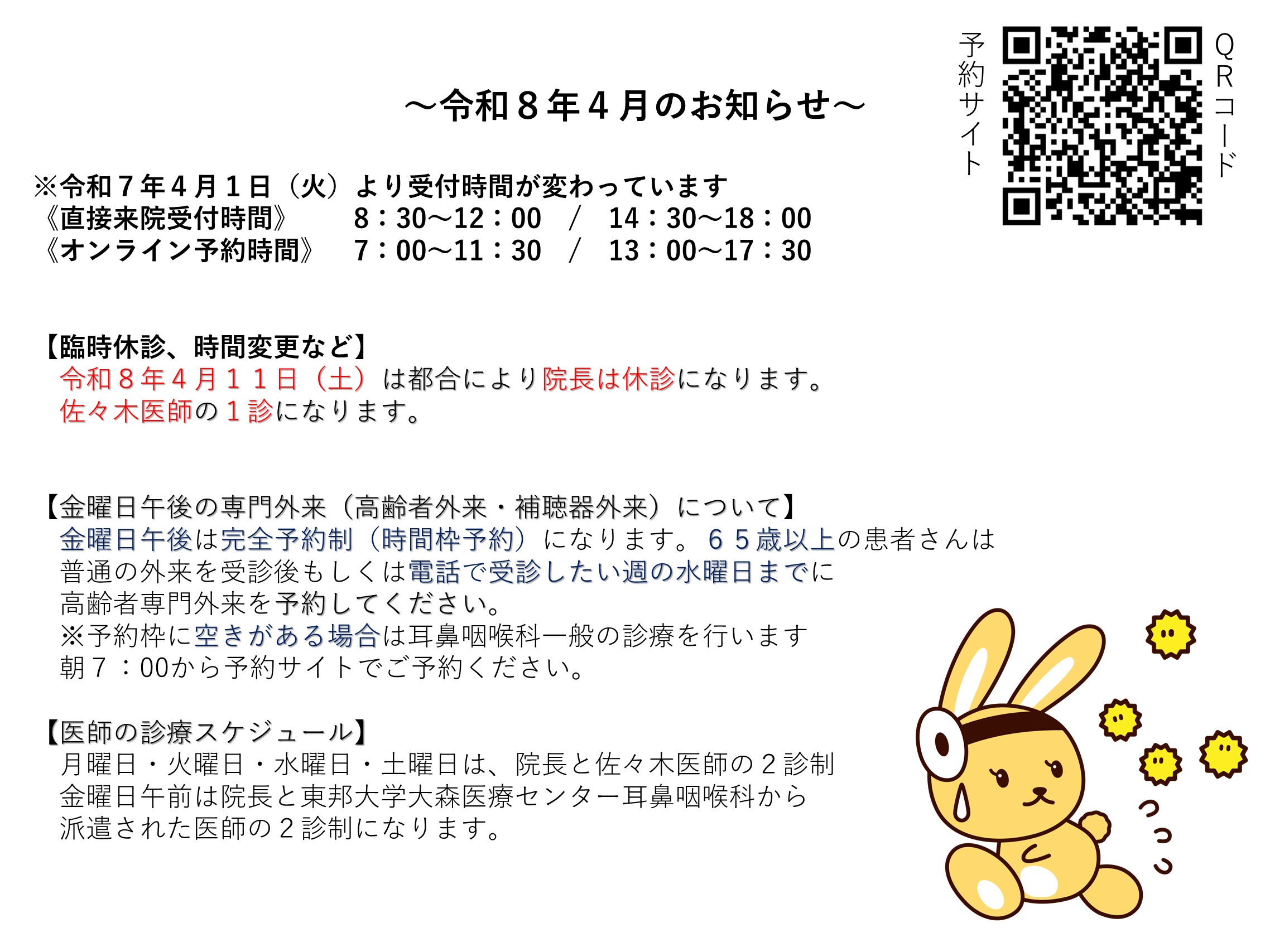 令和8年2月25日(水)佐々木医師の午後の診察は都合により5時までとなります。