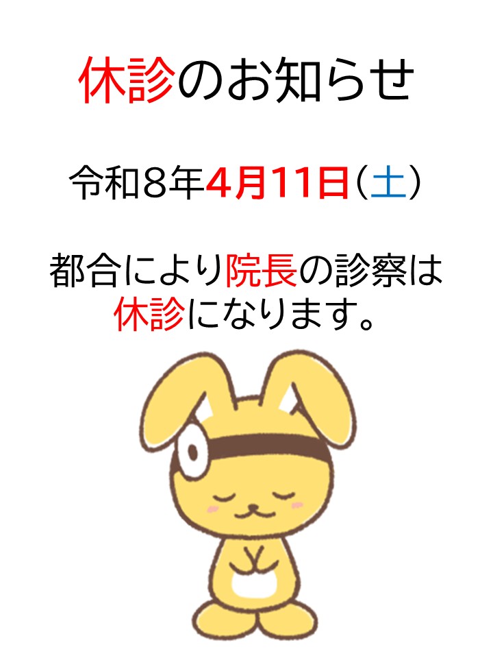 令和8年4月11日(土)は都合により院長の診察は休診になります。